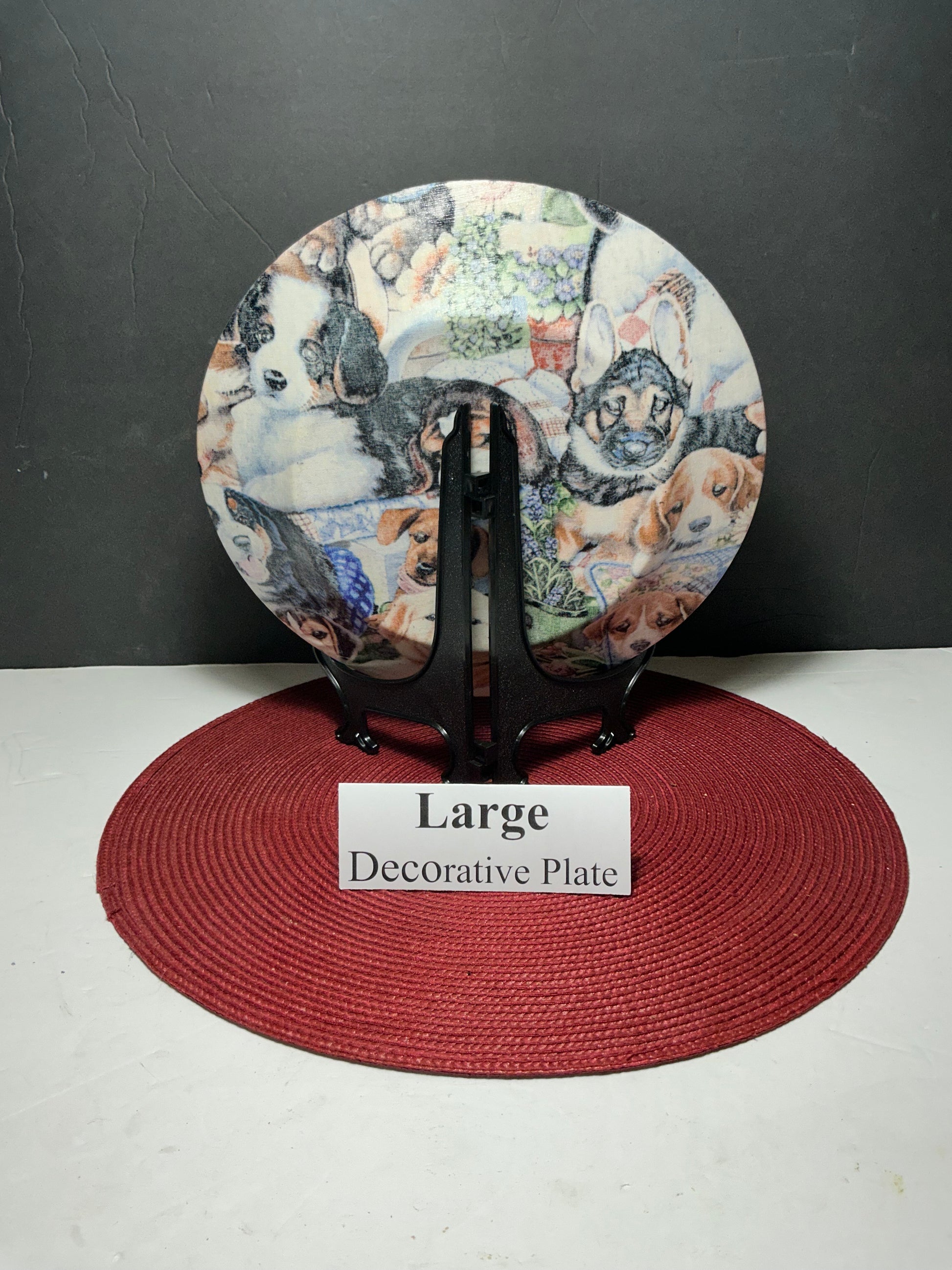 Large Puppy Decorative Plate + Black Display Stand